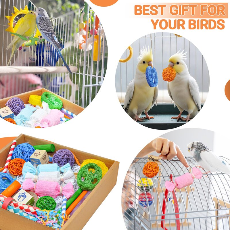 - Holiday-Ready Entertainment: With multiple textures and shapes, this cockatiel toys set offers endless chewing, shredding, and exploring fun, perfect for the holidays when your bird deserves extra treats and stimulation.