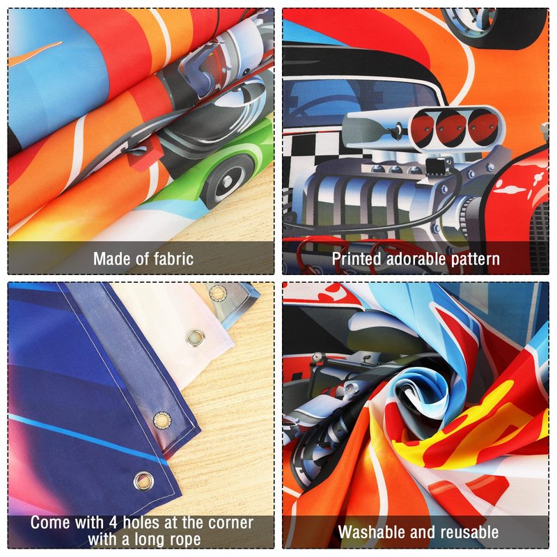 - Material: car themed banner backdrop is made of thick polyester fabrics with vibrant printing. it's seamless, durable, lightweight and non-fading.