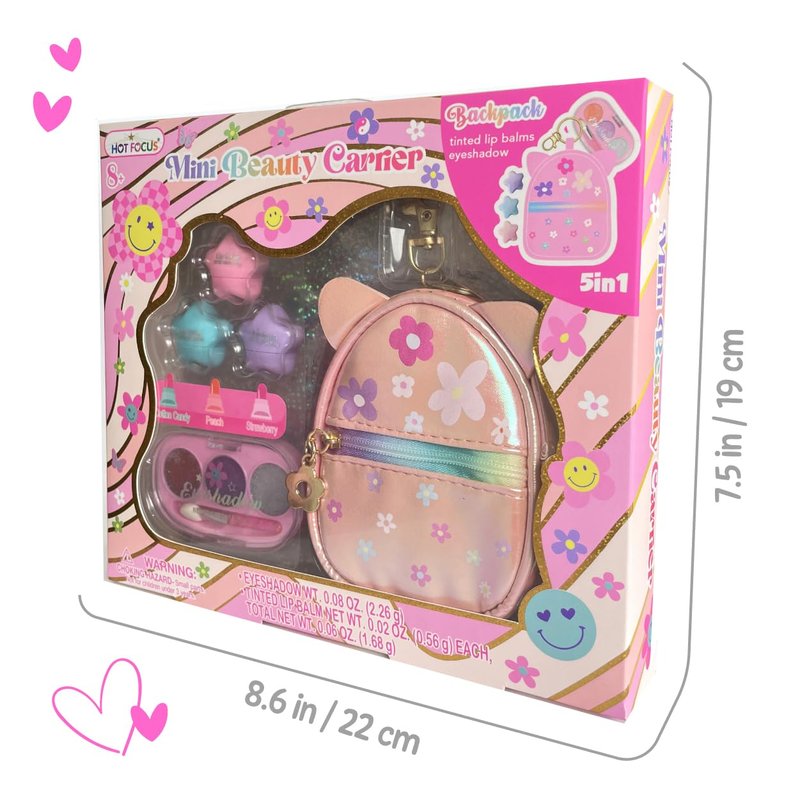 Hot Focus | Bag Makeup Set for Kids, Includes Makeup Kit with Keychain Backpack, 3 Tinted Lip Balms, Eyeshadow with Applicator, and Vinyl Stickers | Suitable for Ages 3+