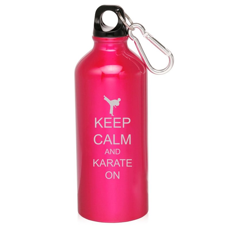 - Hot Pink 20oz Aluminum Sports Water Bottle Caribiner Clip ZW172 Keep Calm and Karate On