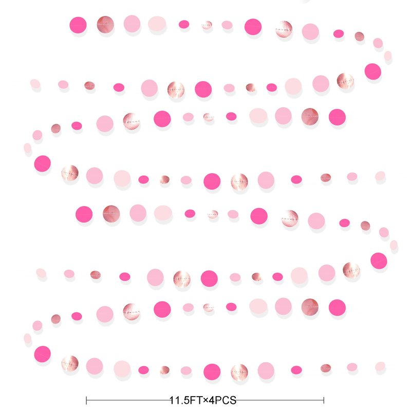 • Package Contains- 4 set of hot pink rose gold circle dot party garland banner,each string is 11.5 feet/3.5 meters, Total is 14 meters/46 feet.