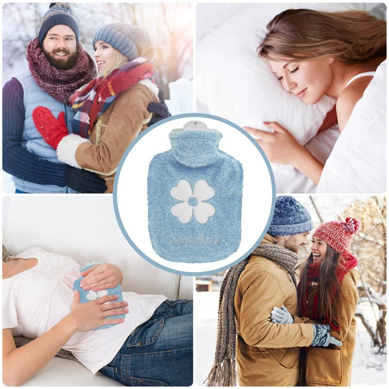 - SAFE & EASY TO USE: Small hot water bottle Made of PVC, non-toxic Anti-slip. making sure maximum safety and transfer the heat well.The luxury furry cover is soft against the skin and provides a cosy barrier from the heat from our big hotwaterbottle.