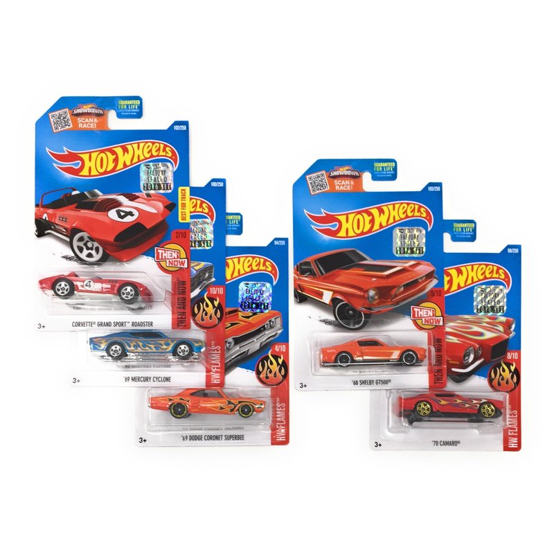Hot Wheels Muscle Car Madness 5 Pack Random Diecast Bundle Set with Various Corvettes, Mustangs, Camaros, Chargers, GTO"s, Firebirds, Shelby, and More