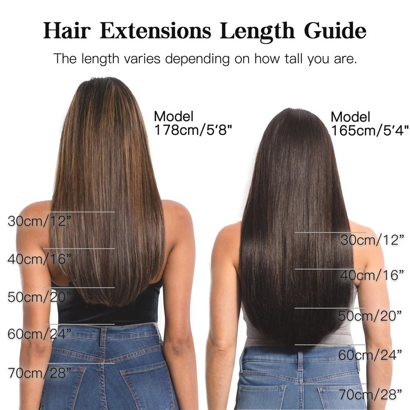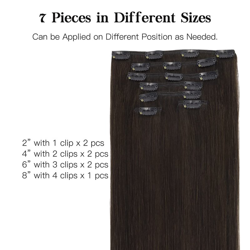 - Available in Various of Colors & Sizes. -- Our Clip In Human Hair Extensions are available in a set of 7 pcs 120g. Available in 6 lengths from 14 inches to 24 inches. Blonde Hair Extensions, Balayage Hair Extensions, a variety of colors to satisfy your color cravings and to match your hair perfectly . You can wear 1 piece to add a ray of radiance to your hair, or you can wear all clip ins to make your hair look fuller, and more charming.