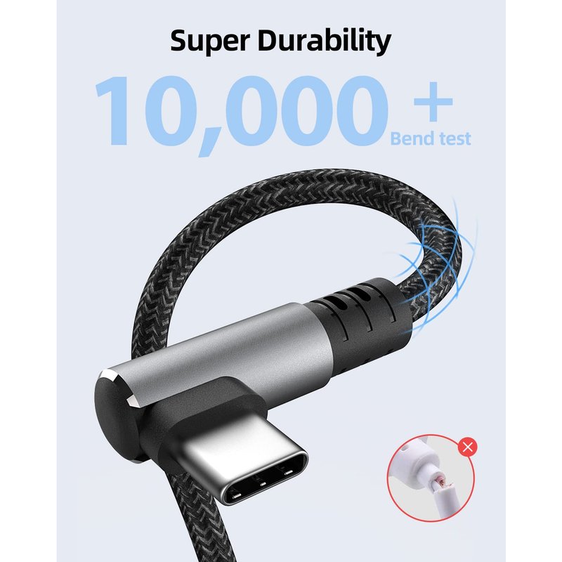 - [Right Angle] 90 Degree L Right Angle Design Plug allowing you to play without being hindered while charging, and to plug easily in hard-to-reach areas and narrow Spaces. Reversible USB connectors on either side can plug into all type C compatible devices without worrying about portorientation.