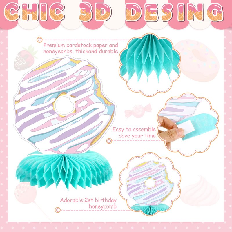 - Donut 2nd Birthday Theme Table Party Supplies: these donut table centerpieces are ideal for donut party, girl 2nd birthday theme party decorations, baby shower, summer party, friends gathering and so on, and also suitable for you to take beautiful photos