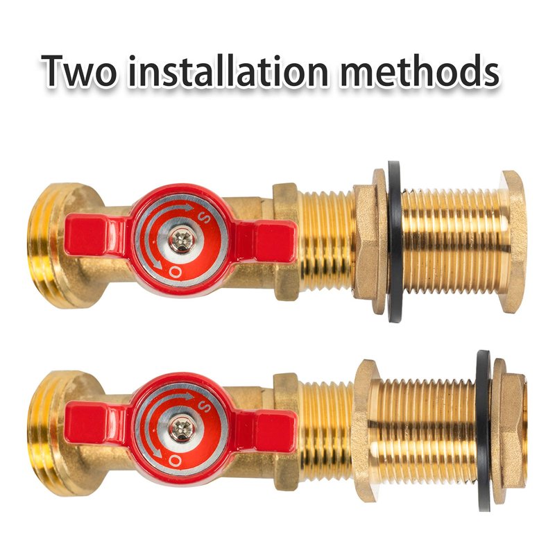 - High quality: Heavy-duty solid brass bulkhead fitting, screwed along the 1-1/8 inch internal thread all the way, with spigot installed at both ends. Heavy-duty 1-1/8 inches, no kinks, right-angle rotating solid brass ball valve.