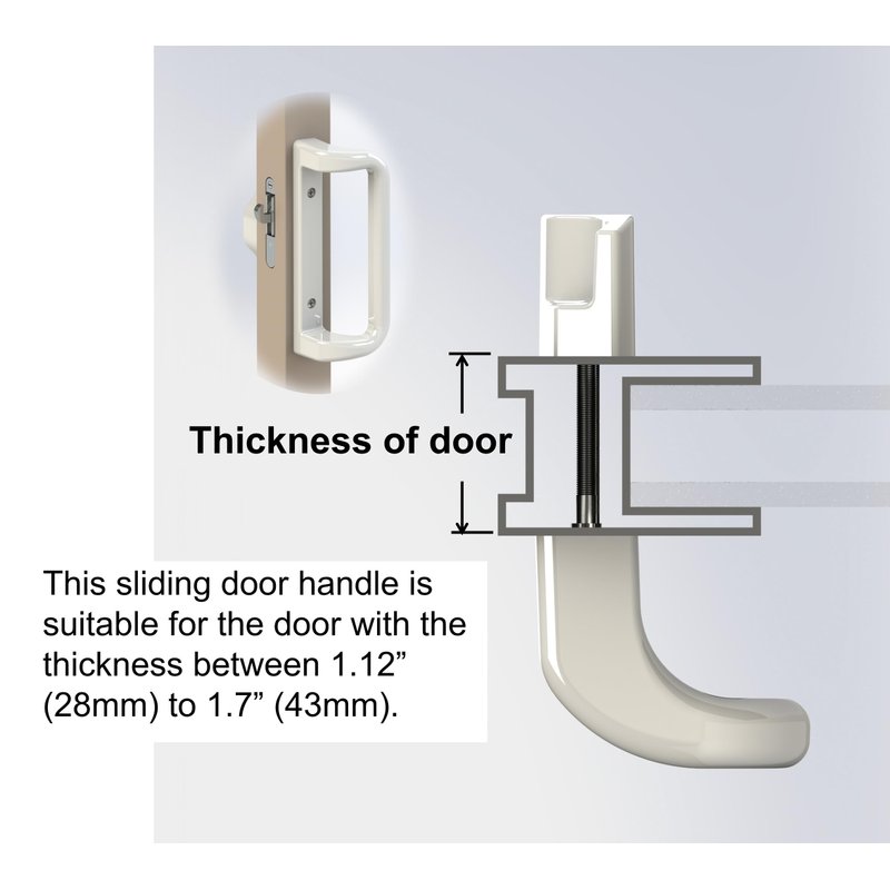 - Sliding Patio Door Handles Made To Adapt To Stile Thicknesses:Ranging from 1.25" - 2.25" which further enhances the flexibility and attractiveness of this product.The narrow 1" escutcheon adapts nicely to any size door stile and the extended bosses on the inside and outside of the escutcheon enhances the stability of the entire system. Attractive styling and craftsmanship makes the 1006 Series Handle Set an economical winner!