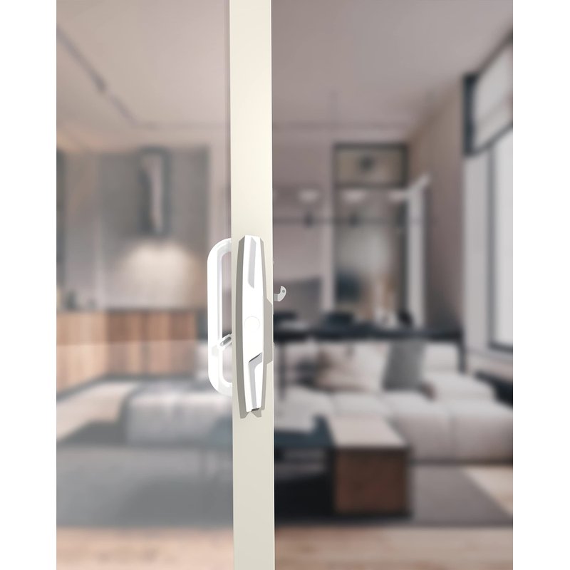 House Guard White Patio Door Handle Set with Mortise, Suitable for Replacement Doors Lock 3-15/16”Screw Hole Spacing.Choices That Add a Unique to Your Patio Glass Sliding Door.