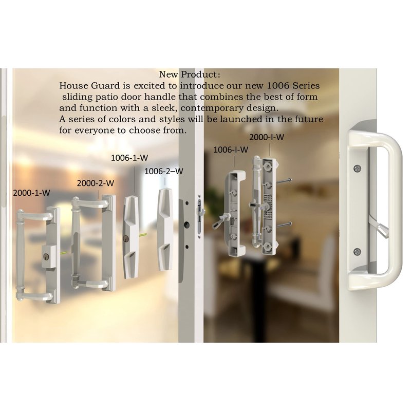 - House Guard New 1006 Series Patio Door Handle Sets :Where distinctive styling meets desirable value. House Guard attractive new handle set for the sliding patio door market offers one of the most stylish looks in handle sets. House Guard has designed a one-piece patio door handle that appears pleasing on patio door.