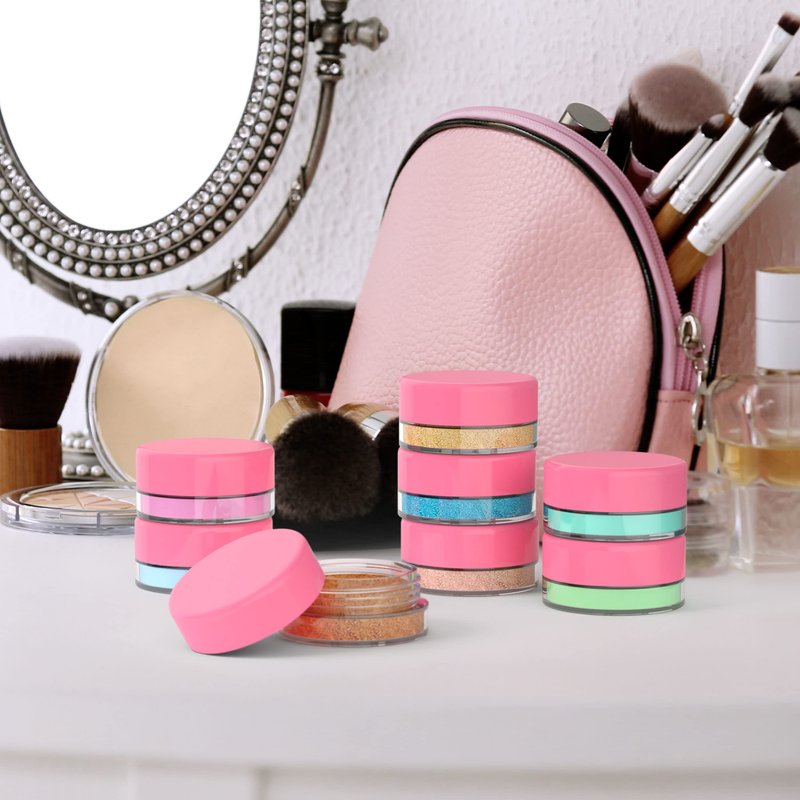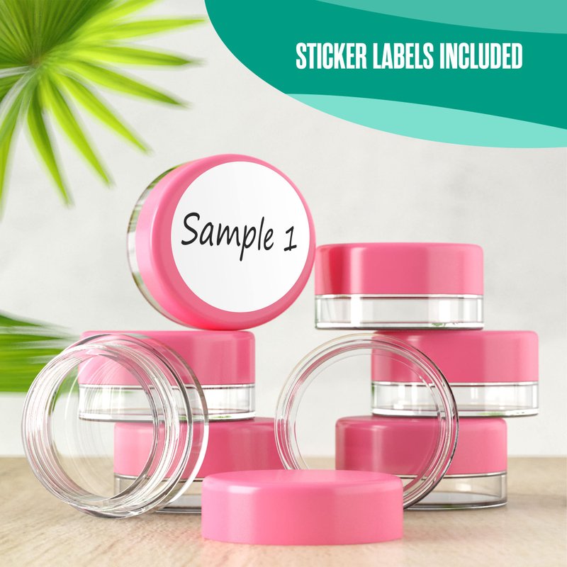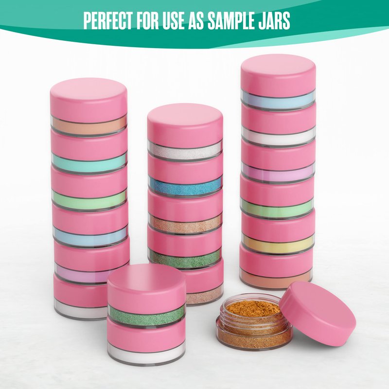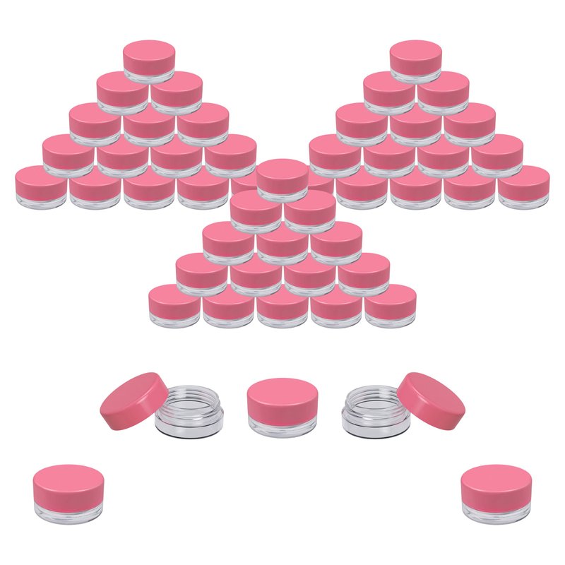 Houseables 3 Gram Jar, 3 ML, Pink, 50 Pk, BPA Free, Cosmetic Sample Empty Container, Plastic, Round Pot, Screw Cap Lid, Small Tiny 3g Bottle, for Make Up, Eye Shadow, Nails, Powder, Paint, Jewelry
