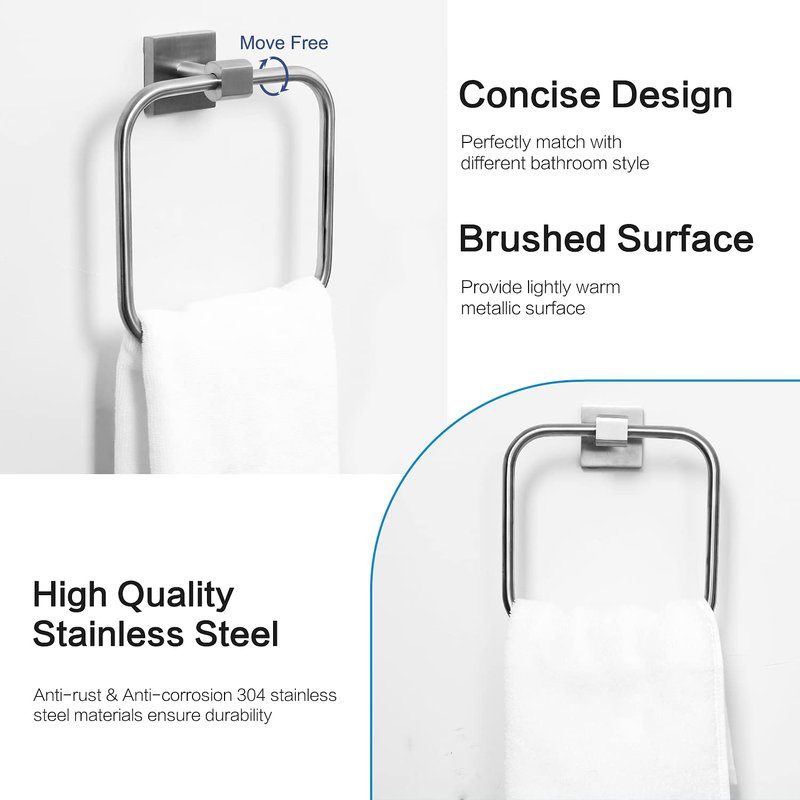 - 【CONCISE DESIGN】With modern concise design, the square hand towel ring looks awesome and can be used for different bathroom decor. The concise design makes the hand towel holder much more beautiful and elegant.