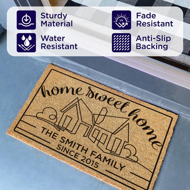 - Effortless Personal Touch: Tailoring your door mat is a snap with our user-friendly customization tool. Choose design, size, and add your family name. Our cutting-edge UV printing maintains vivid, enduring colors that resist fading with time.