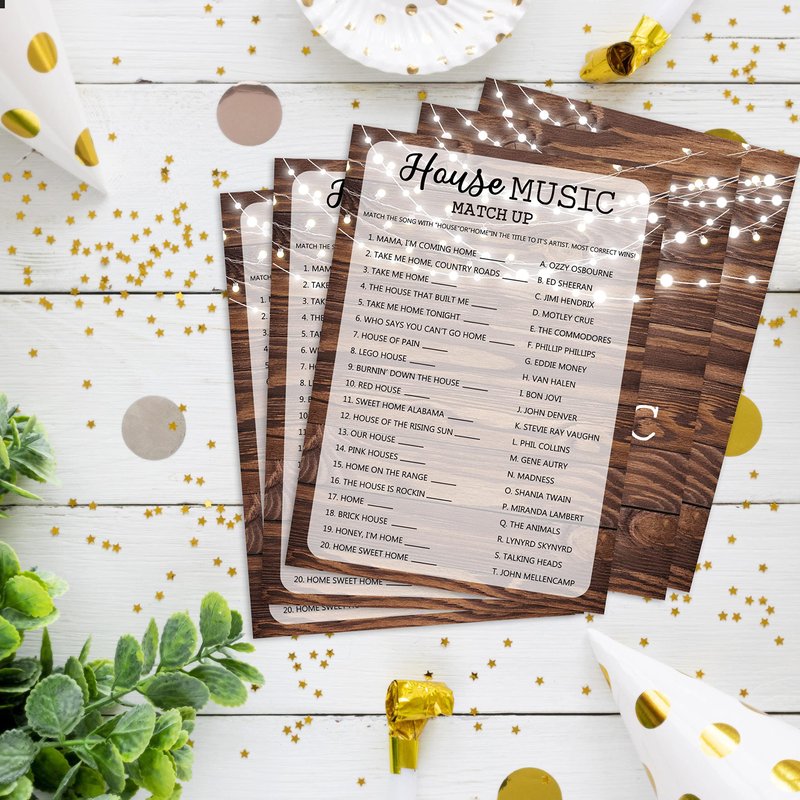 Housewarming Party Games, House Music, Rustic New Home, New House, New Homeowner Party Games Cards, 30 Sheets Each Pack