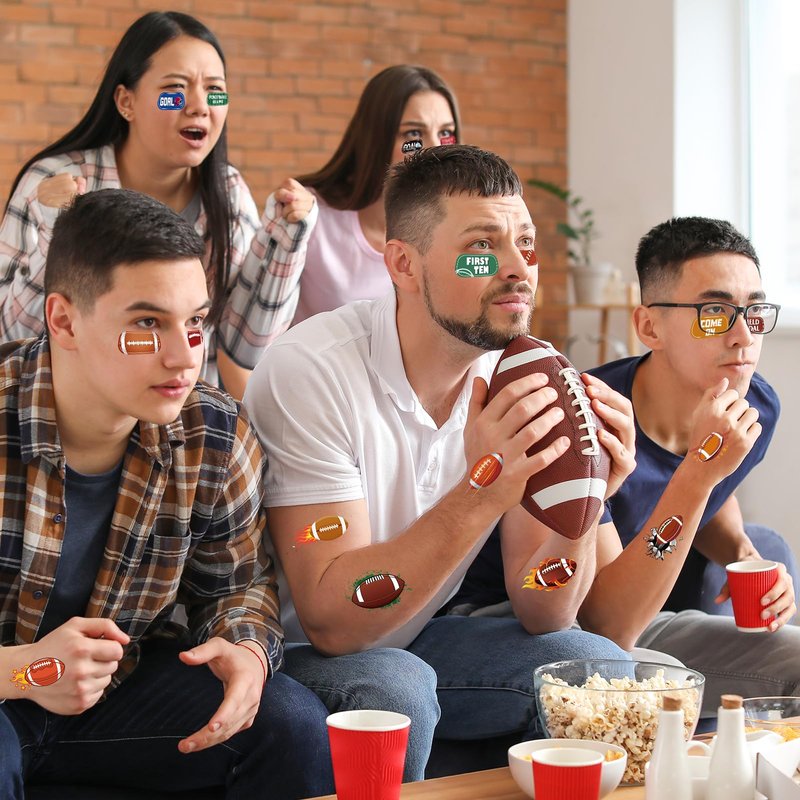 - 120pcs American Football Eye Tattoos: Cheering, Chowing, and Championship! You will receive 120pcs American football face tattoos for game day parties Super Game Bowl Party Decoration in 40 different designs, 3pcs for each, these cute super football bowl party decorations tattoos designed for fans, players, and cheerleaders alike, these vibrant tattoos bring a touch of sporting spirit to any event.
