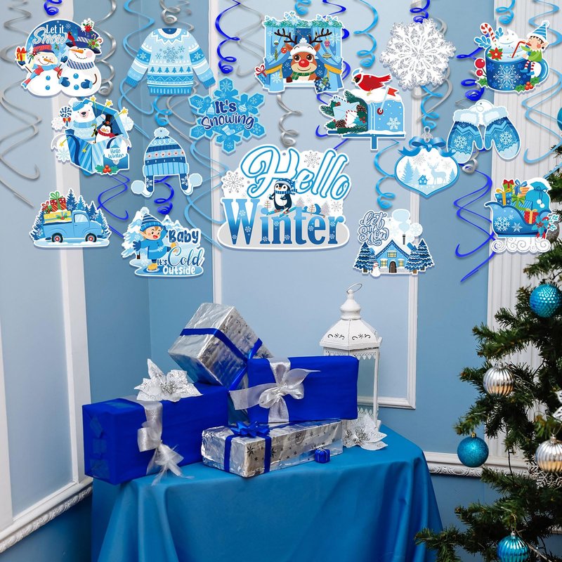 - Hello Winter Party Ceiling Decorations: Hello winter! Let’s welcome the cold weather and celebrate winter wonderland party now! You will receive 30pcs Hello Winter hanging swirls, 16pcs winter themed foil swirls hanging with colorful winter elements cutout cards and 14pcs blue and silver double swirl, perfect for Winter Christmas Decoration, make your winter holiday decoration and winter birthday party a big hit!