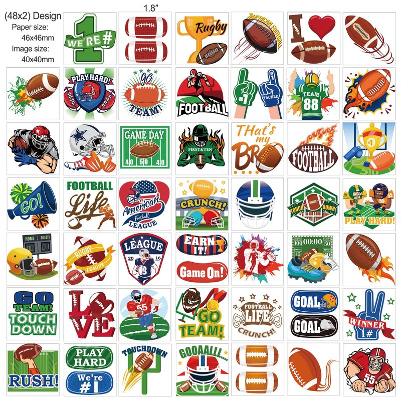 - Great Value Football Themed Party Favors: Go Team! Play Hard! Let’s welcome the super football bowl with these exquisite football face tattoos! You will receive 96pcs football tattoos temporary in 48 designs, the sufficient quantity of football tattoos can meet your football party decoration needs and can share with your families and fiends!