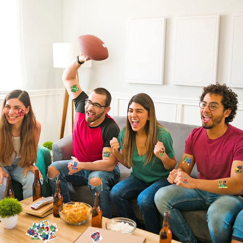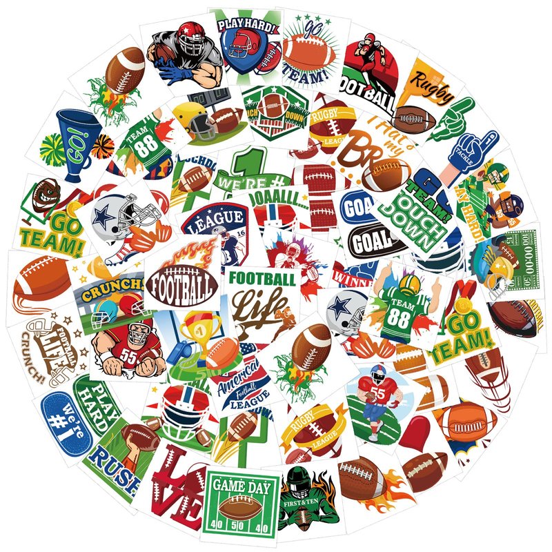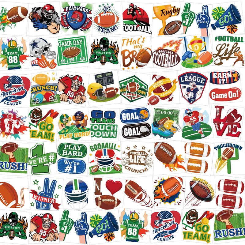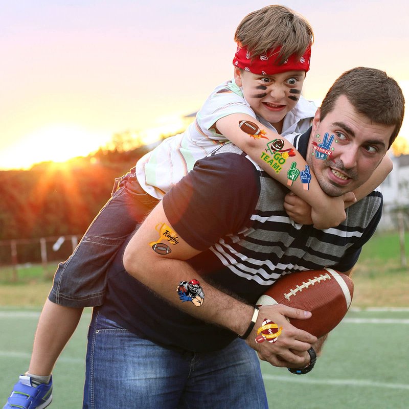 - Bring Endless Fun on Football Party: Apply this football game themed party tattoos on your chest, face, shoulder, waist, sleeve, back, leg, arm, chest, hand, feet, neck and any other part of your body to show your love of football and be the center of football game and football sports events! Sports themed tattoos stickers also can used to decorate your home and belongings, add strong super football bowl party vibe!