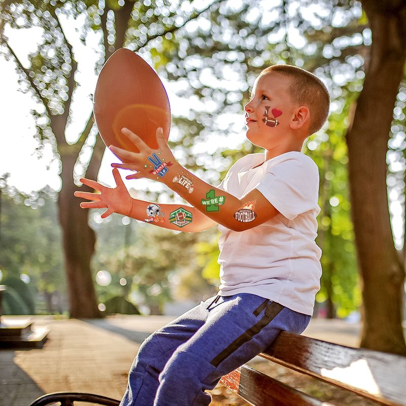 - Safe and Long Lasting: football tattoos for kids are made of quality AB glue material, odorless, water-proof and scratch-resistant, safe and non-toxic, have been put through rigorous party decorations testing, Does not harm the skin, both adults and children can use, can maintain for a long time about 3 - 5 days!