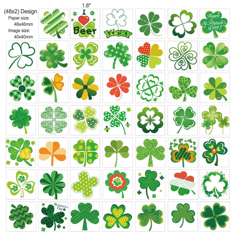 - Great value clover tattoo sticker set: You will receive 96 clover tattoo sticker sets with 48 different patterns! Each tattoo sticker is made into a green clover shape, which is very suitable for St. Patrick's Day decoration. With them, you can get a variety of tattoos to meet your decoration needs!