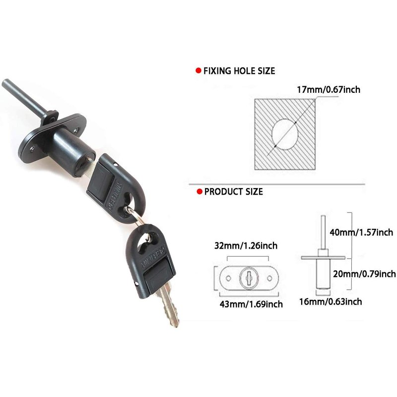 - 【NOTE】Please pay attention to the size before purchase the file cabinet lock kit. Maybe will have 1-2mm error. The keys for desk locks are different