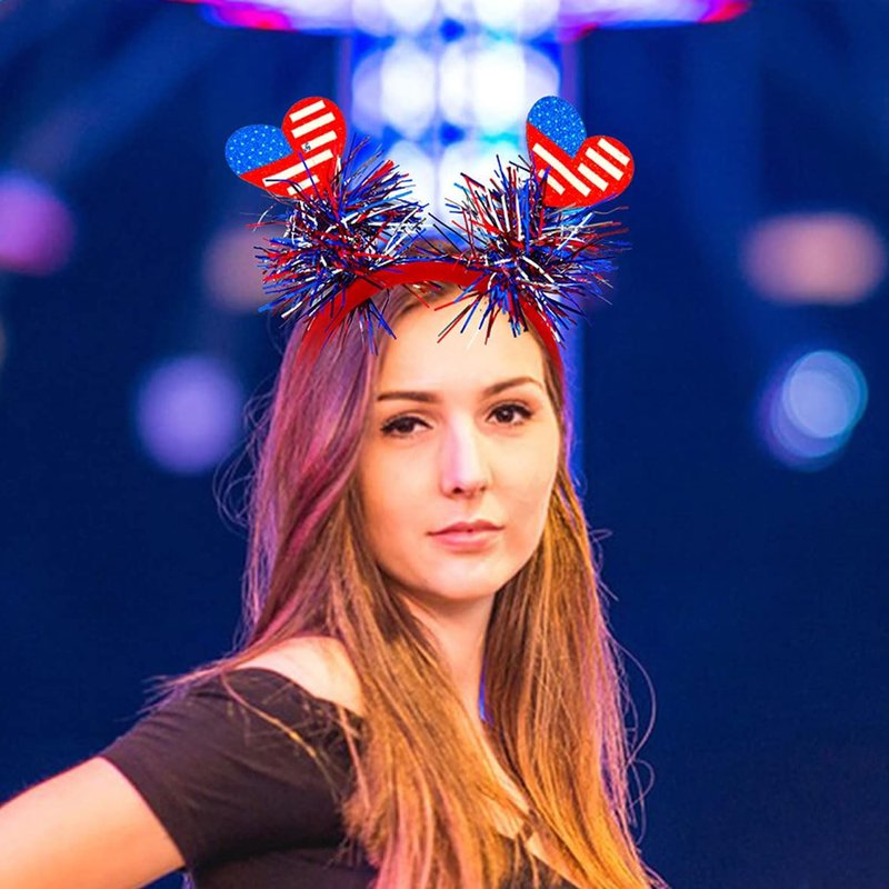 - 🧡Stand Out Heart Design: This hair hoop features a unique American Flag-inspired design with heart that will surely catch everyone's attention. The combination of blue, white, and red colors adds charm to your look, Shiny glitter make it fashionable and chic, helping you easily become the center of attention at any festival.