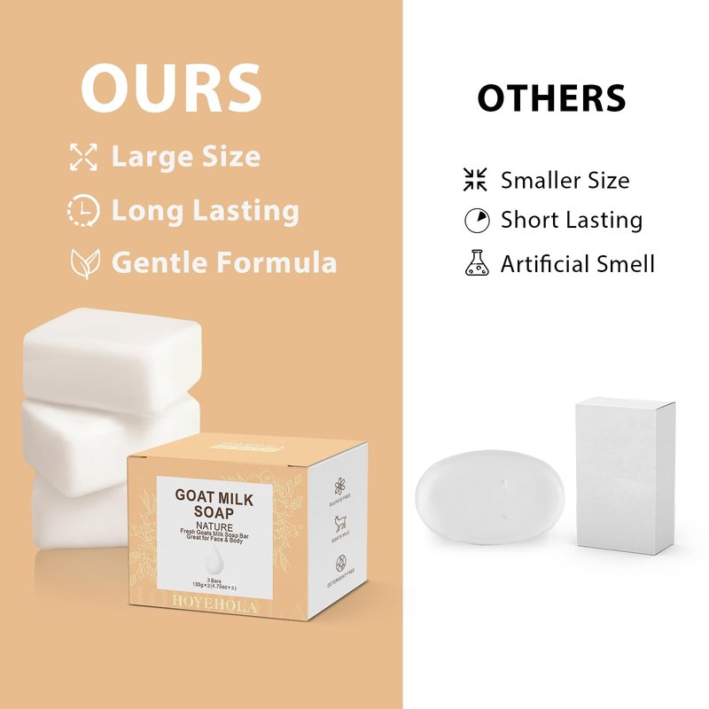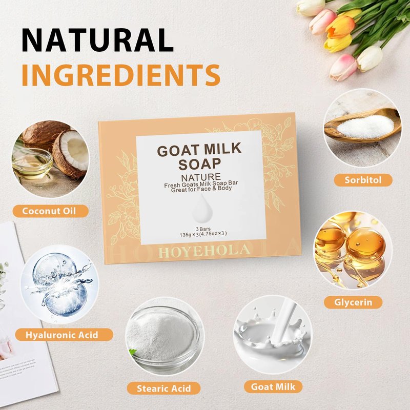 HOYEHOLA Goat Milk Soap Bar 3 Packs - Natural Moisturizing Soap Bar for Men Women All Skin Types Face & Body, 14oz Pack of 3 Bars