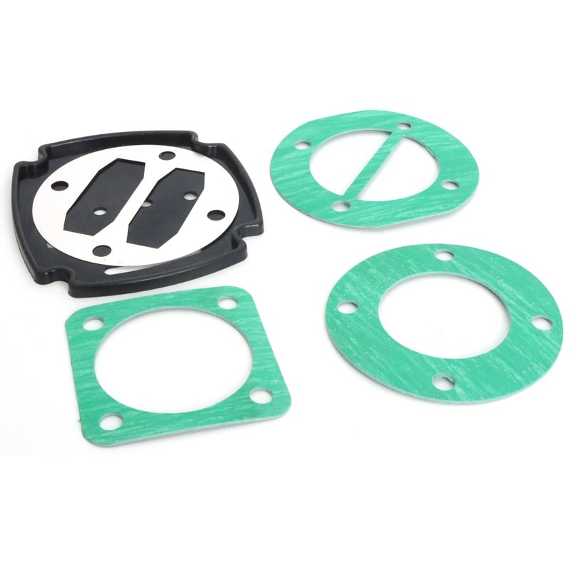 - This kit includes all gaskets shown in the picture: oil crankcase seal rubber gasket, square cylinder to crankcase gasket, and three round gaskets which are the cylinder to valve plate gasket, the center valve plat