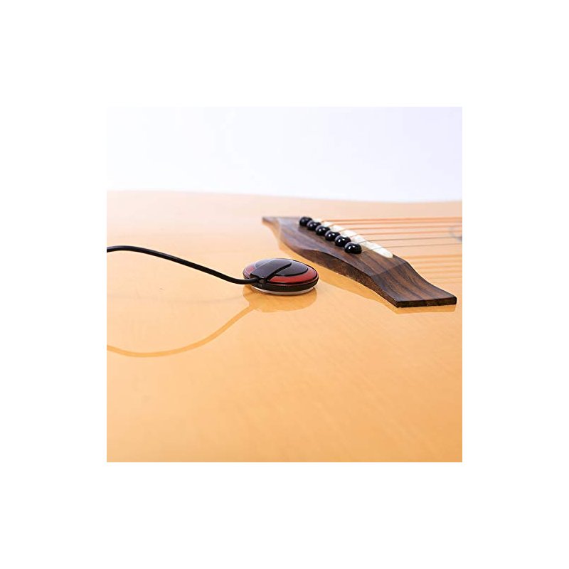product manual: This pickup can work well on guitar amplifiers and other musical instruments (such as cello, banjo, ukulele, mandolin, banjo...). . The pickup is very sensitive and can restore the fidelity of the instrument, but the sound depends on the quality of the speakers. If you have any questions, please feel free to contact us. specification: Female plug: 1/4" [6.35mm] Cable length: about 10.8 inches Sensor: Use a double-sided faucet to connect the sensor near the sound source. Self-adhesive Velcro: used to fix the jack on the surface of the guitar. Packing size: 5.5 inches x 4.6 inches x 0.7 inches Color: black and red Weight: 10g On the packaging 1 TD-11 piezoelectric pickup 2 x stickers"
