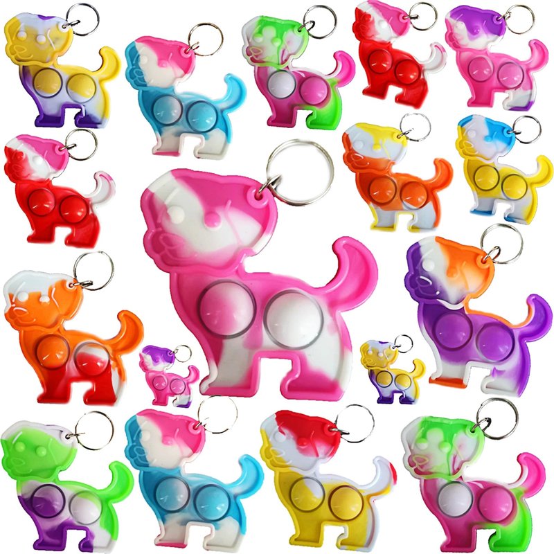 HOZKEAP 100 Packs Bulk Dog Mini pop Fidget Keychain Gifts for Boys and Girls Kids Birthday Party Favors Supplies and Classroom student Prize