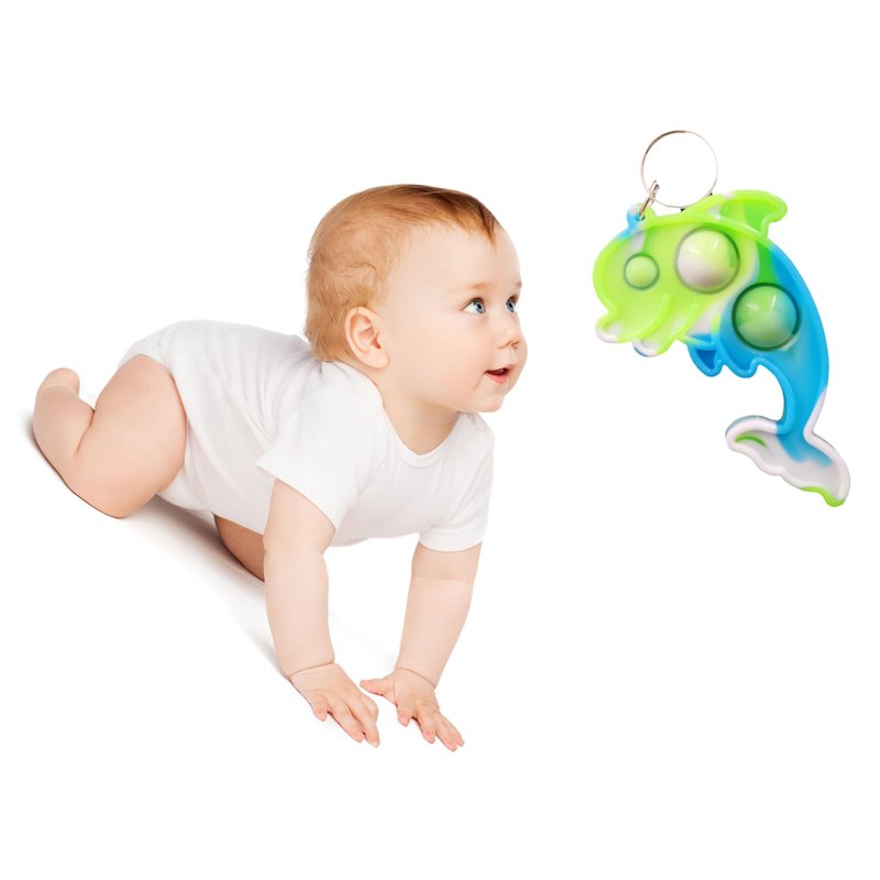 100 Packs Bulk Dolphin Fidget Bubble Mini Pop key chain