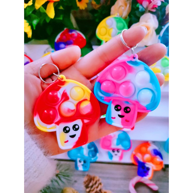 - 2,Made of silicone,package included:24 Packs Bulk Mushroom Mini pop shape key chains,Random color to send