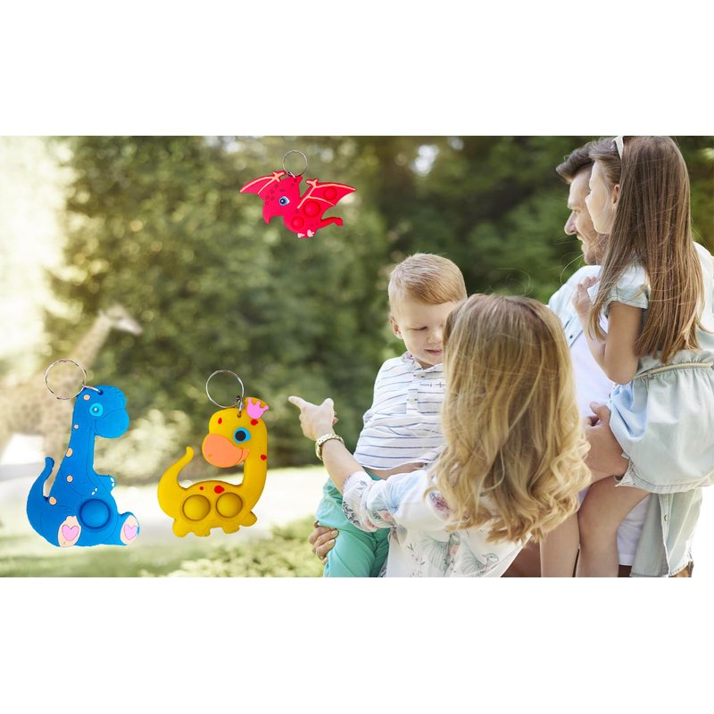 30 packs Bulk Dinosaur animal Mini pop Fidget Keychain