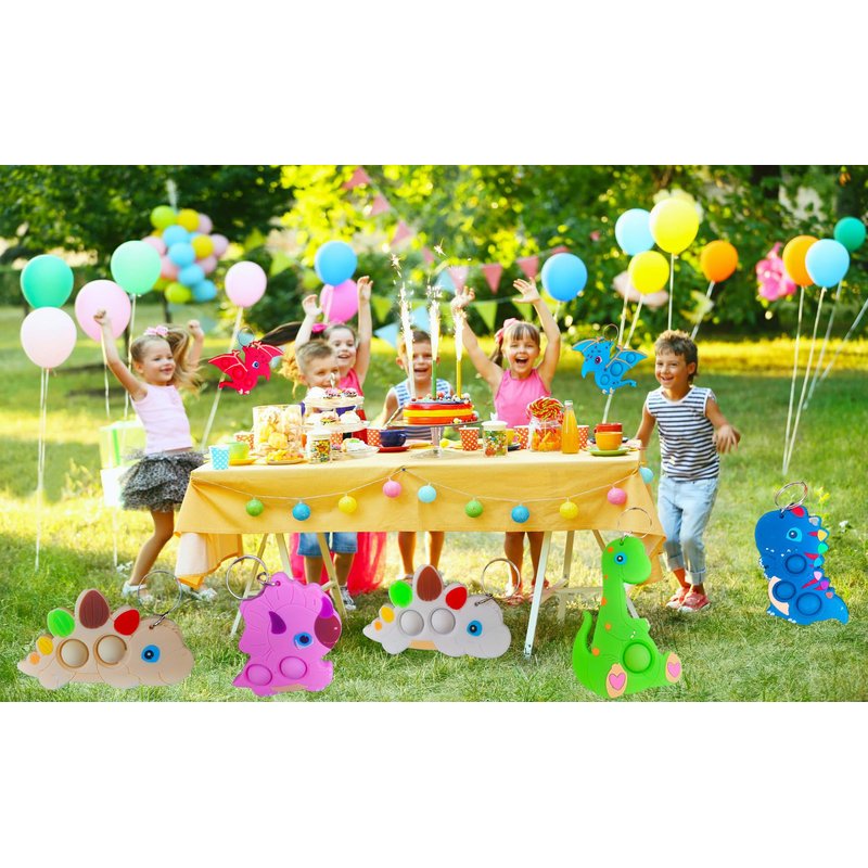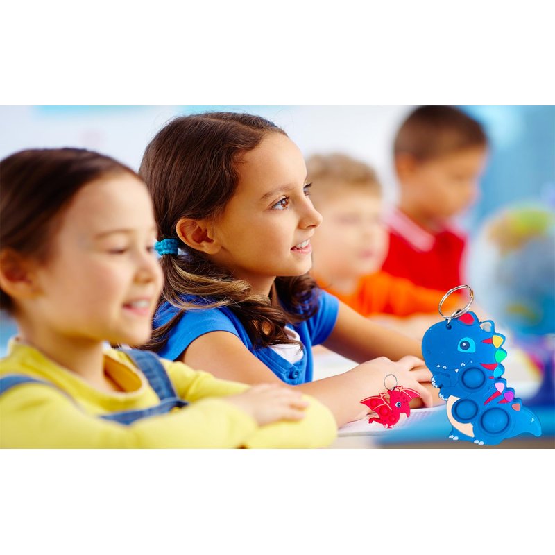 - 2:Package included: 30 packs Bulk Dinosaur fidget keychain party favors,Size:3.0*2.0*0.3 inch.Random color to send