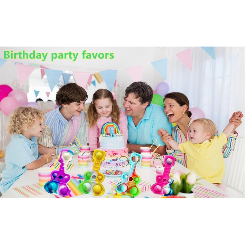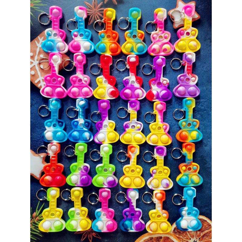 HOZKEAP 30 Packs Bulk Guitar Mini pop Fidget Keychain for Boys and Girls Kids,Birthday Party Favors Supplies and Classroom Prize