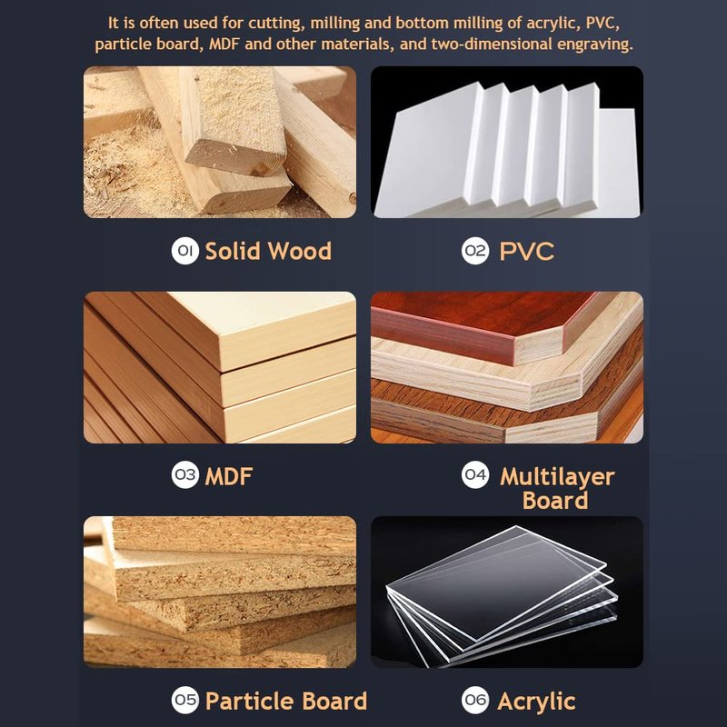 - Application: For MDF, HDF, epoxy board, PVC, plastic