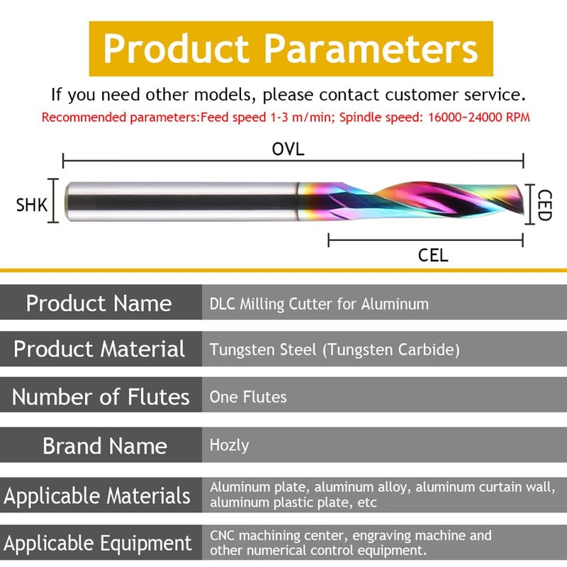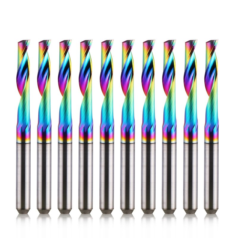 - CNC Single Flute Router Bits :3.175mm (1/8") shank, 3.175mm (1/8") cutting diameter, 17mm(0.67") cutting length, 38mm (1-1/2")total length.