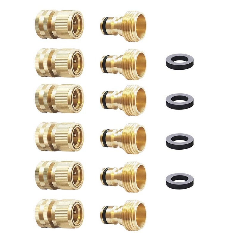 - ★【Standard 3/4 Inch GHT Garden Hose Quick Connect】- You will get 6 brass female connectors +6 brass male connectors+4 free washers.You can enjoy it work perfectly with any standard garden hose,faucets,hose bibs and watering devices.