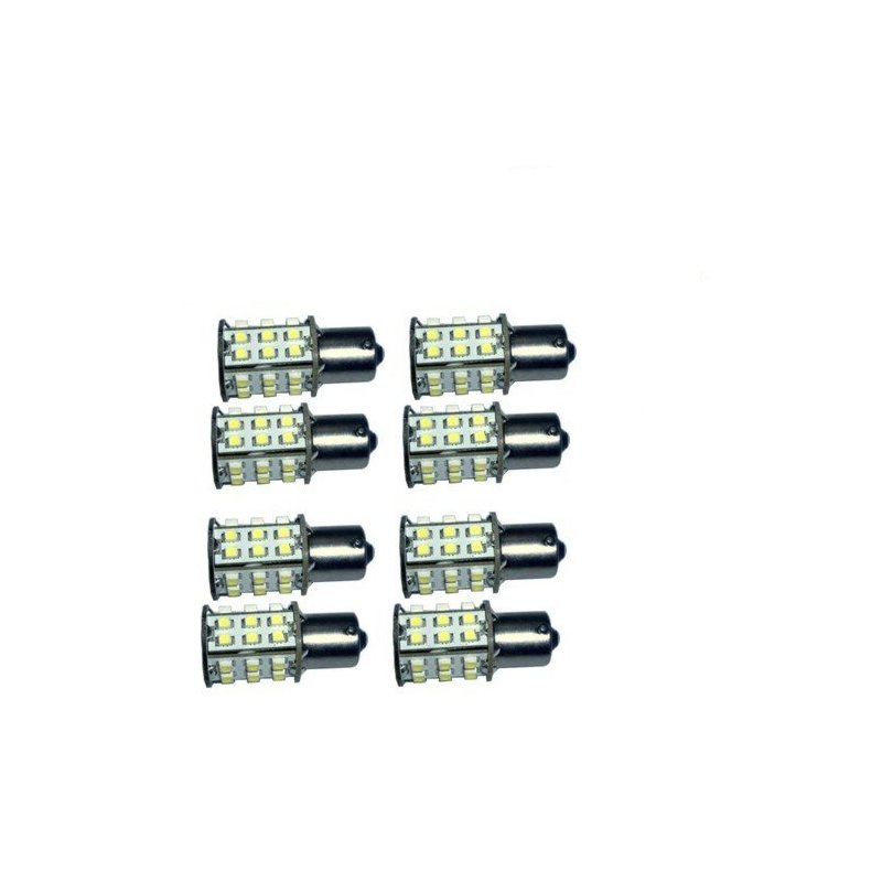 HQRP BA15s Bayonet Base 30 LEDs SMD 3528 LED Bulb Cool White 6000K 10-30V DC 3.6W 190 Lumen. This HQRP SMD LED Bulb would be useful in Car Auto Vehicle Motorcycle Scooter Truck Trailer RV Boat Marine etc. It is brighter than regular LED bulbs and has wider field of view. However, its power consumption is very low. HQRP Long Life SMD LED Bulb of high quality can be used for Tail light, Instrument Cluster Lights, Under hood light, Dash Lights, Dome Lights, Map Lights, License Plate Lights, Reverse Lights, Parking Lights etc. You do not need to do any modifications to replace standard base model. It is really easy - just plug it into the light socket.