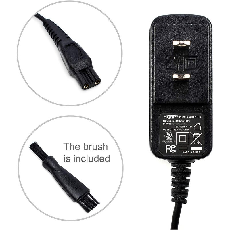 HQRP AC Adapter/Power Cord Compatible with Philips Norelco 8000X 6867X 7617XL 5616X 7315X 7615X 7145XL 1050CC 1050X 1059X 1060X 1090X 5615X, Arcitec Razor/Shaver Plus Cleaning Brush