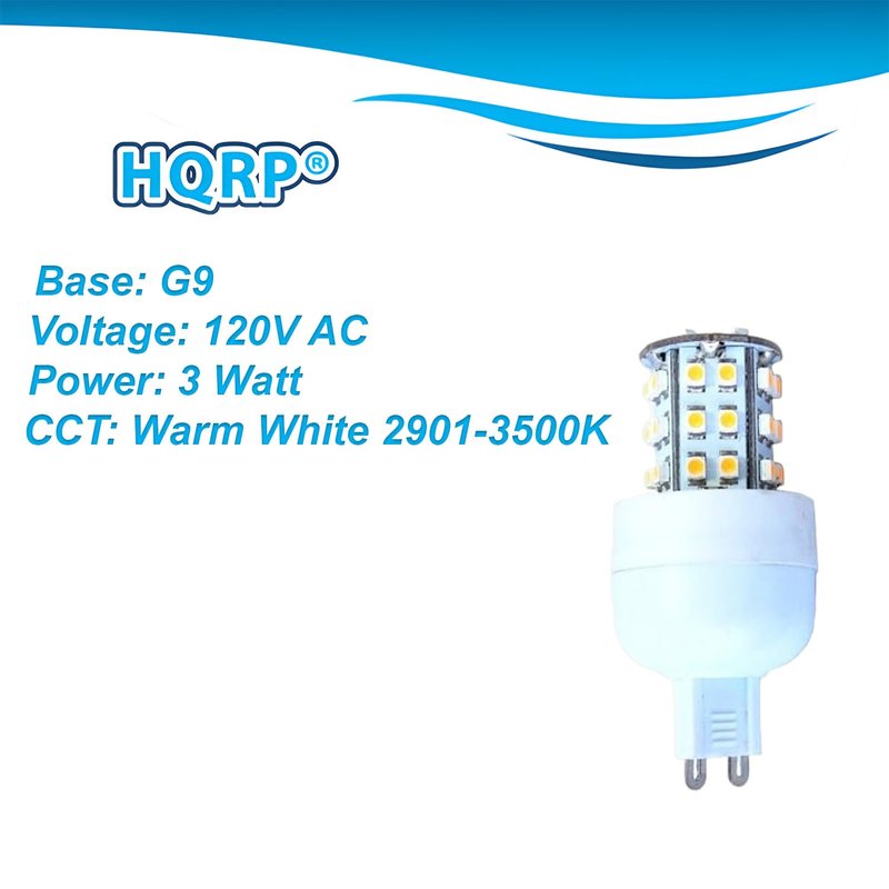 HQRP Dimmable G9 36 LEDs SMD3528 120V LED Bulb Warm White 2901-3500K 3W 134 Lumen. This HQRP SMD LED Bulb would be useful in restaurants, houses, villas, hotels, caf?s as well as in wall lamps, chandeliers, ceiling lamps, corridor lights etc.