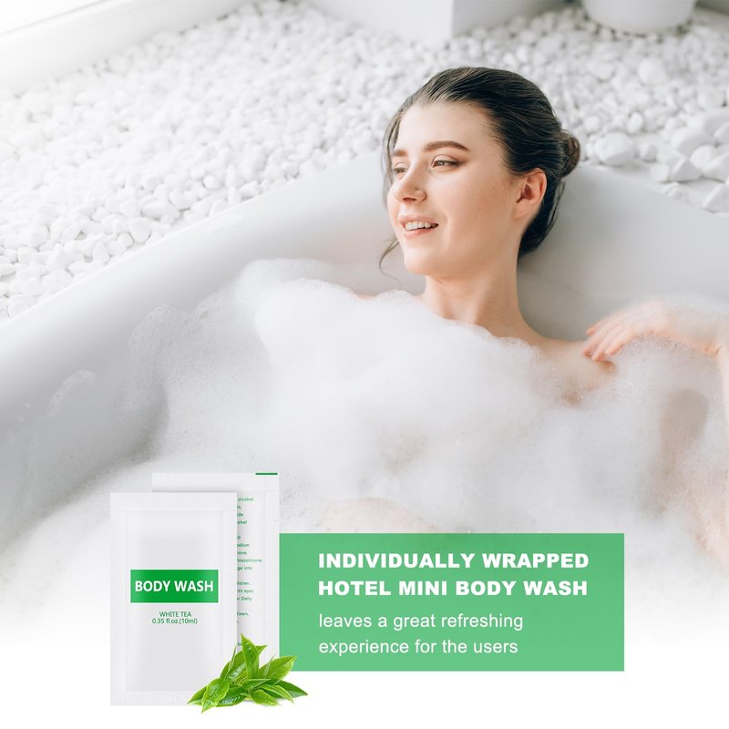 - Bulk for Nice Value: 30 piece set of 0.35 oz/10ml travel size body wash bulk; Neatly packaged,easy to tear open, very convenient, ideal travel size disposable toiletries for guests, family use, vacation rental use