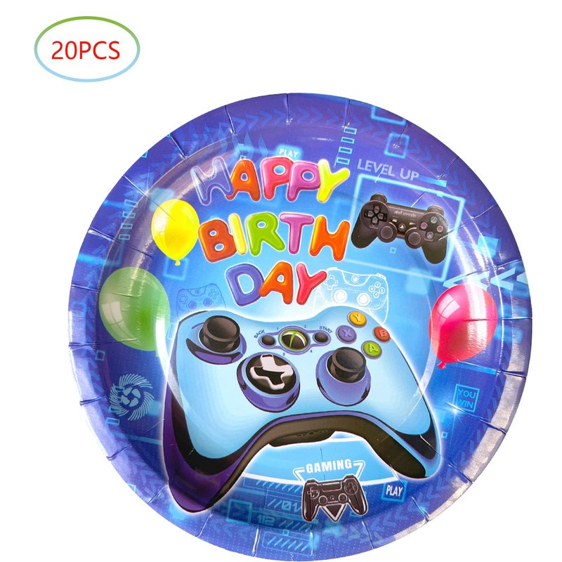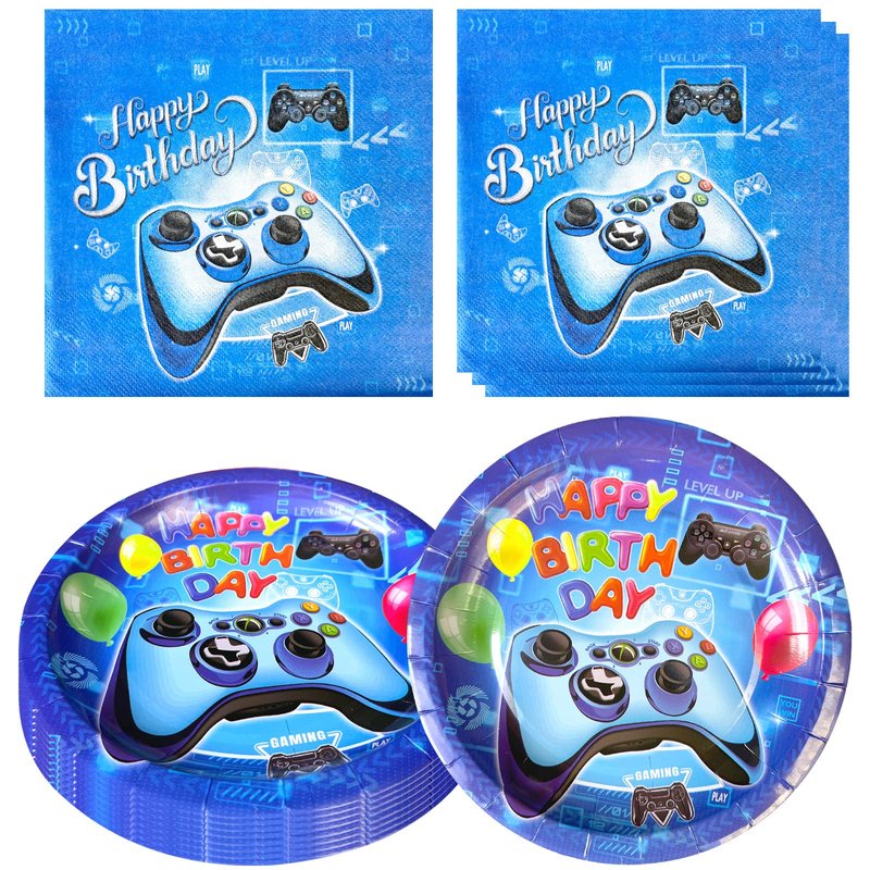 Hqyybf Video Game Birthday Party Supplies, 20 Plates and 20 Napkins, Video Game Theme Birthday Party Decorations for Boy Kids