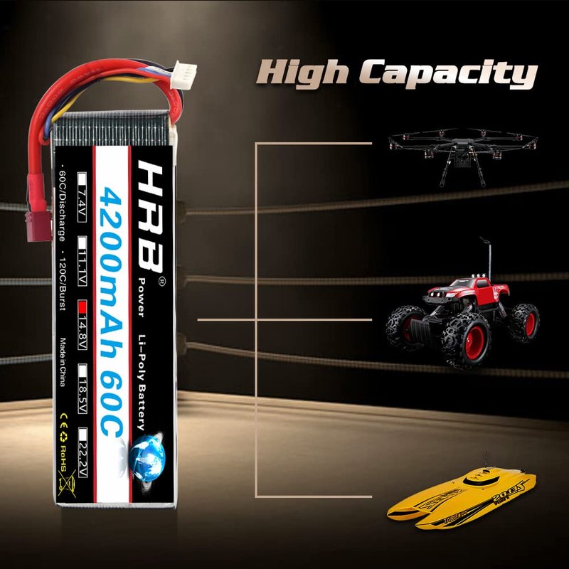 HRB 4S Lipo Battery 14.8V 4200mAh 60C T Lipo Battery Compatible with RC Car RC Plane RC Truck RC Boat