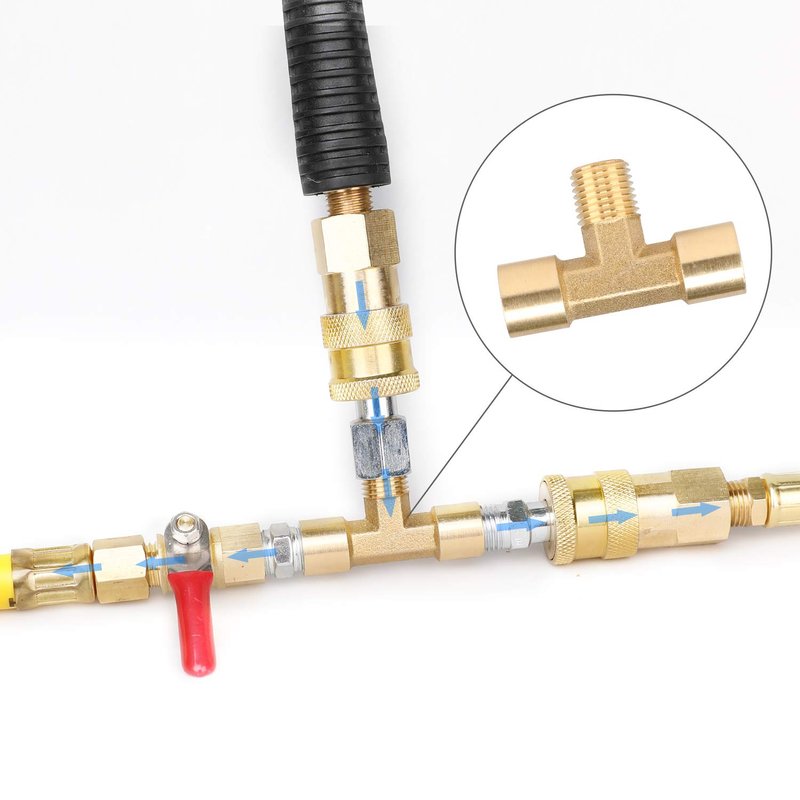 Hromee 18-Piece air compressor accessories kit standard Industrial pneumatic air coupler quick connects. Here's everything you need to connect air tools and control air flow with compressed air. This kit includes brass ball valve, tee pipe fitting, air coupler and plug that has all the most commonly used air compressor accessory items in one set. All the outside thread need use thread seal tape.
