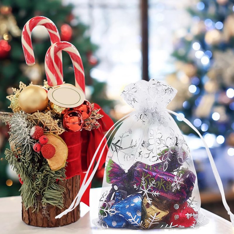 - CUTE SNOWFLAKE DESIGN - These Christmas organza drawstring bags decorated with cute snowflake are easy to close and open