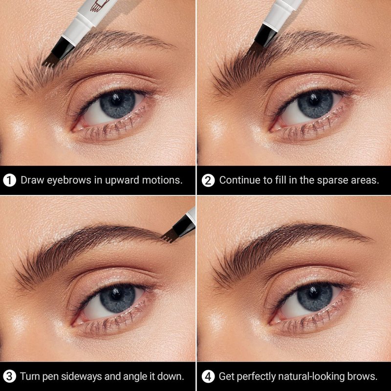 - 【Easily Achieve Natural, 3D Brows】Different from ordinary eyebrow pencil, our microblading eyebrow pen has 4-tip microblade design, which effortlessly crafts slim, natural-looking brows that are rooted and vivid. Effortlessly create beautiful, hair-like strokes that emulate real brows. Ideal for saving time, whether you're an office worker or a busy individual seeking impeccable brows.