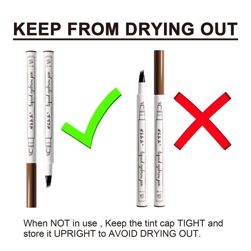 - 【Warm Tips】1. After drawing your eyebrows, remember to keep the cap of the liquid eyebrow pencil tightly closed and store it upright with the tip facing down to prevent it from drying out after use. 2. If the tip becomes dry, gently wipe it with a paper towel and shake it before use. 3. If you have any questions about our products, please contact us, we will provide you with quick and satisfying service.