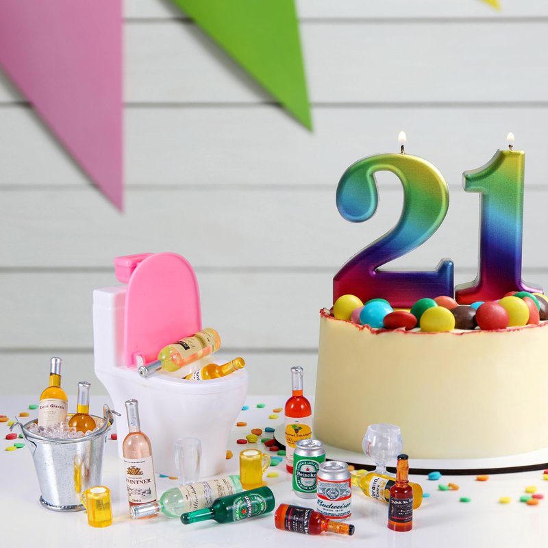- MATERIAL --Beer bottles, wine bottles and beer glasses and drink mostly made from quality resin material, the bucket made of metal,miniature fake ice cube and tableware are made of quality plastic material, is light and anti-breakage, easy to store.