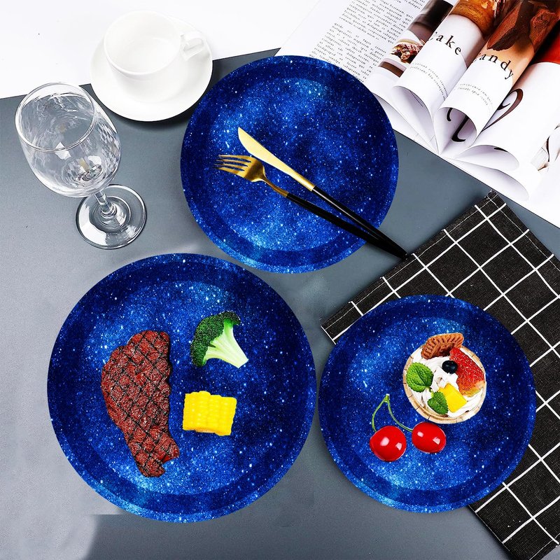 - 【Starry Party Themed Premium Material】Our family uses made of 300g hard card paper.All of our blue plates are made of quality paper,non-toxic,no smell,heat-resistant and durable.The pattern and color are well-printed and fade-resistant to provide you with a party full of Starry Birthday theme atmosphere.